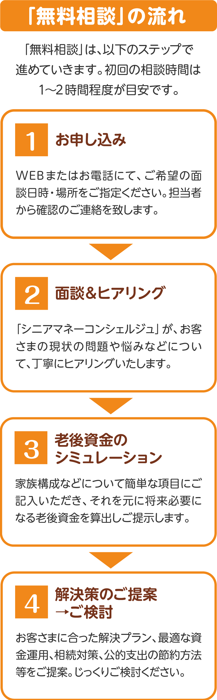 お悩み・不安内容を「シニアマネーコンシェルジュ」がお応えいたします。
