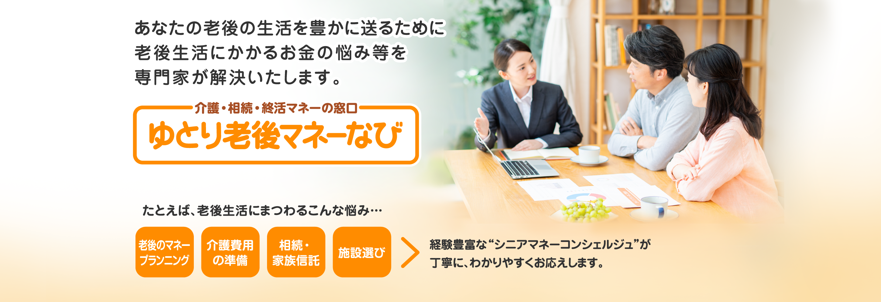 お客様の生活の「安心」と「幸せ」のために、老後マネーのプロがサポートいたします。