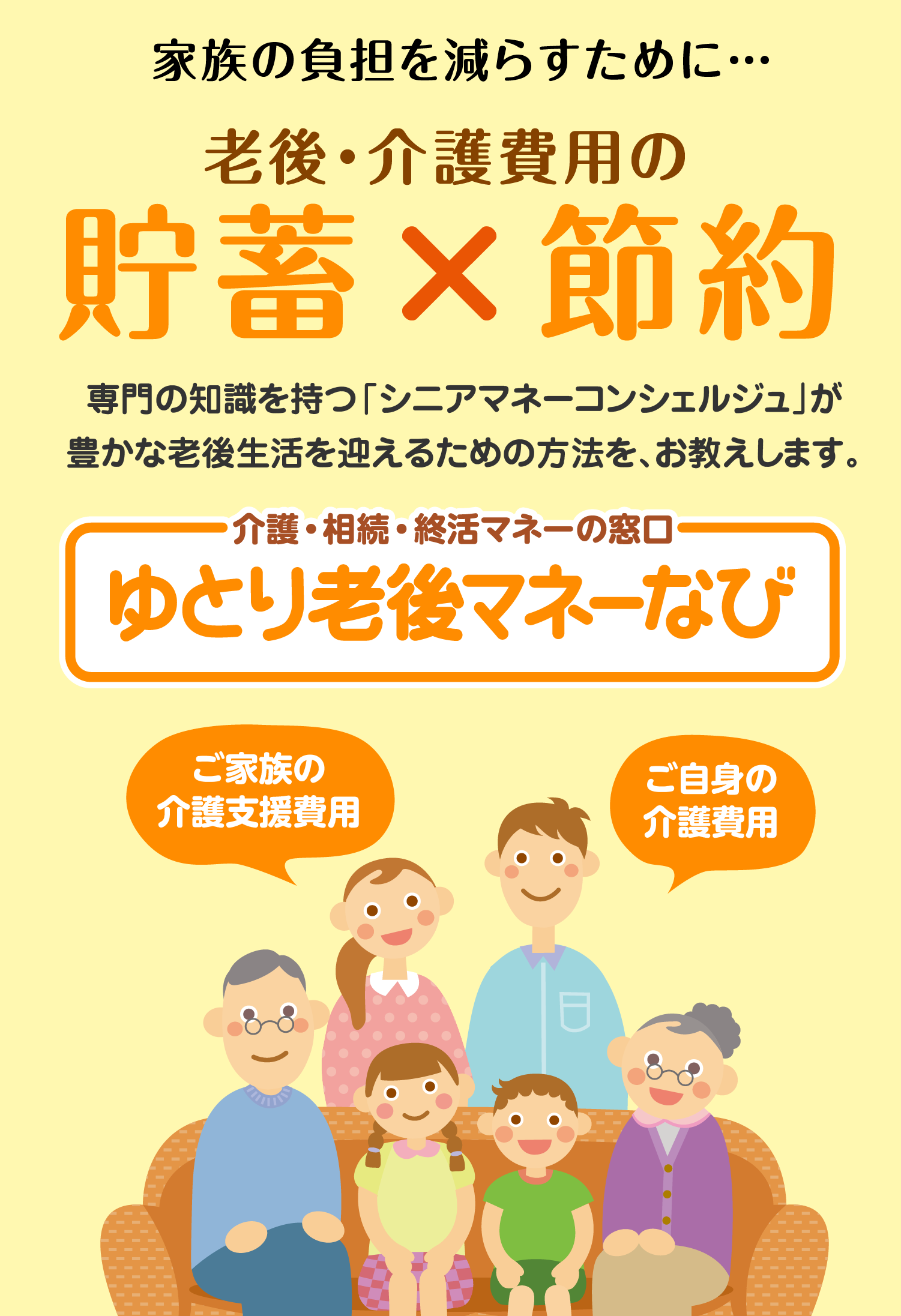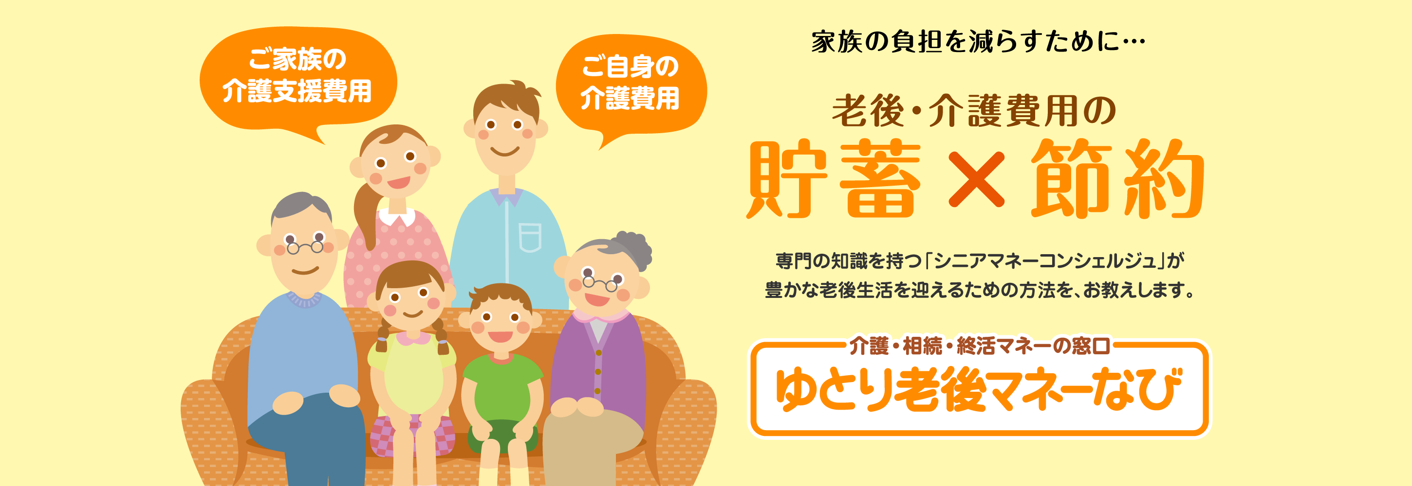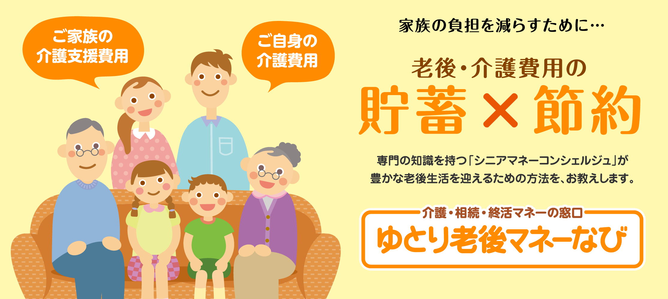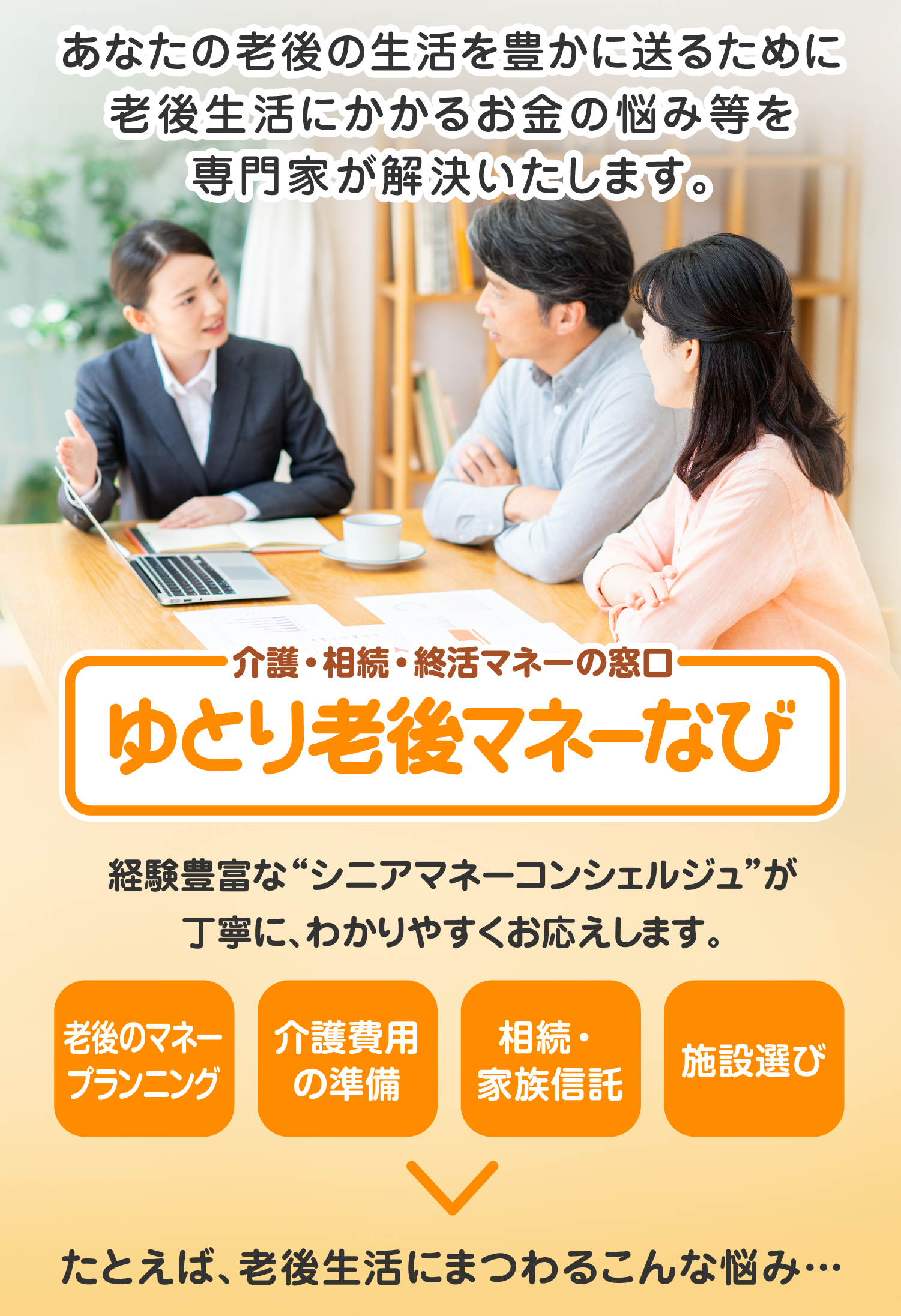 ご自身やご家族の老後の生活や介護になった場合のトータルライフプランニングを考える必要性です。まずは、「ゆとり老後マネーなび」に登録されている専門家に「無料相談」をしてみてはいかがですか?